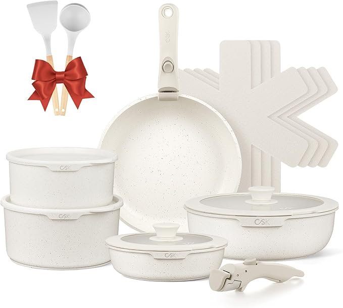 17 PCS Pots and Pan Set, Nonstick Cookware Set Detachable Handle, Induction Kitchen Cookware Sets Non Stick with Removable Handle