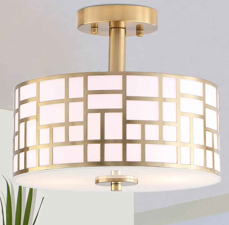 Semi Flush Mount Ceiling Light, Modern Light Fixtures with Round Metal and Glass Shade for Bedroom Hallway Kitchen Dining Living Room Foyer Entrym, Bee Venom for Arthritis