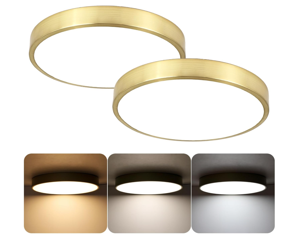 2 Pack 9 Inch Dimmable LED Flush Mount Ceiling Light Fixture, Slim Modern Gold Ceiling Light for Kitchen Bedroom Living Room Closet Hallway, 20W, 3000K/4000K/5000K